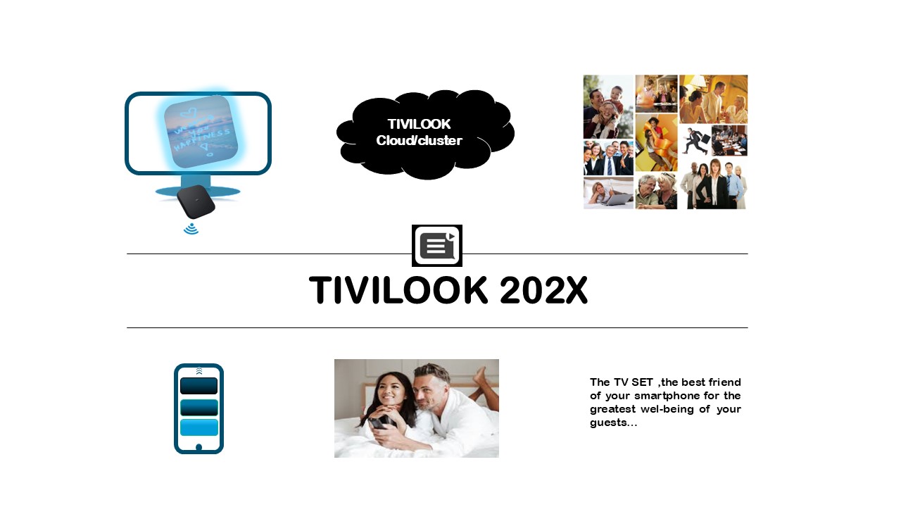 Tivilook is an innovative entertainment platform designed to enhance both legacy TVs and Smart TVs. Tivilook caters to the hospitality sector, healthcare facilities, retirement homes (EHPAD), and social communities. It’s a scalable solution, seamlessly adapting to small B&Bs as well as large luxury hotels. The Tivilook Gateway is a plug-and-play solution that transforms legacy screens by delivering notifications and creating custom local channels. These channels can showcase services, NearVoD, local news, events, photo albums, cine clubs, and more—offering exactly what seniors expect, all through zero-touch technology. As a full IPTV platform, Tivilook delivers a wide range of services tailored for hotels, hospitals, or communities. It’s compatible with legacy TVs via our Android IP set-top box, Android Smart TVs, and even smartphones or tablets (BYOD). Tivilook offers features such as wake-up calls, weather forecasts, room service, city tours, sightseeing, local products, cultural activities, promotions, sports, fitness, massages, easy and fast check-in/check-out, customer profiling, in-room Wi-Fi, and digital signage.